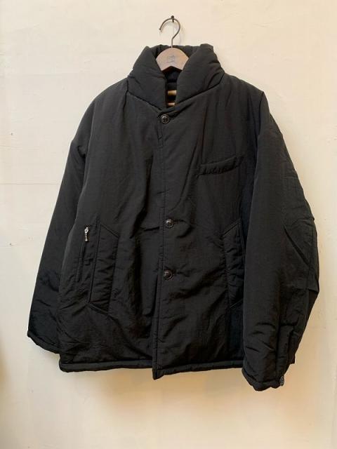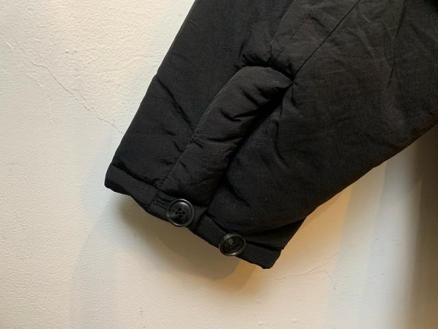 使用している中綿は-3M-のモノで保温力が非常に高く、湿度はしっかり外に逃がし、ドライで快適、尚且つ洗濯できる高機能中綿を使用しています。中綿アイテムでいつも気を付けているのが中綿の分量で、とにかく丸く可愛くならない絶妙なバランスで各箇所で綿の量をバラバラに調整しています。工場はかなり嫌な顔をしますが、これも自分のこだわりなのでなんとかやってもらっています。他のディティールもテーラードとコートがミックスしたような仕上がりにしました。