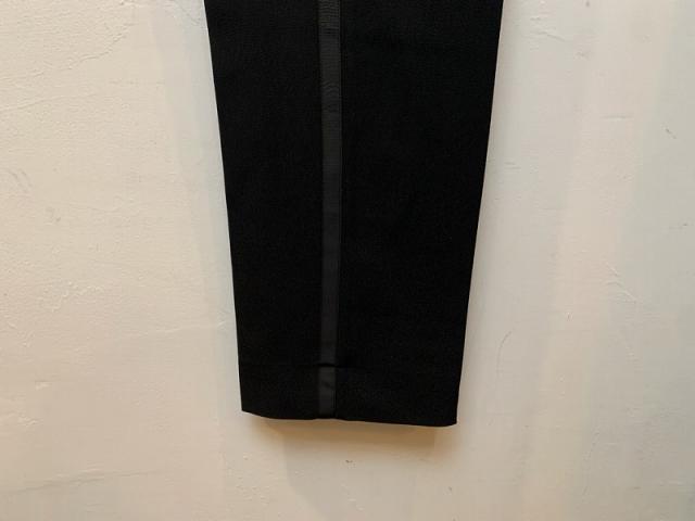 ポリエステル素材のストレッチ生地を使用しており、とろみのある風合いで穿き心地がよく、洗濯にも強く扱いやすいのが特徴です。センタープレスが施され、腰回りはすっきりとしたノータック仕立て。裾にかけてテーパードになった程良い太さのストレートシルエットで、カジュアルにもきれいめスタイルにも使える万能アイテムです。