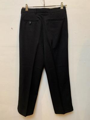 ポリエステル素材のストレッチ生地を使用しており、とろみのある風合いで穿き心地がよく、洗濯にも強く扱いやすいのが特徴です。センタープレスが施され、腰回りはすっきりとしたノータック仕立て。裾にかけてテーパードになった程良い太さのストレートシルエットで、カジュアルにもきれいめスタイルにも使える万能アイテムです。