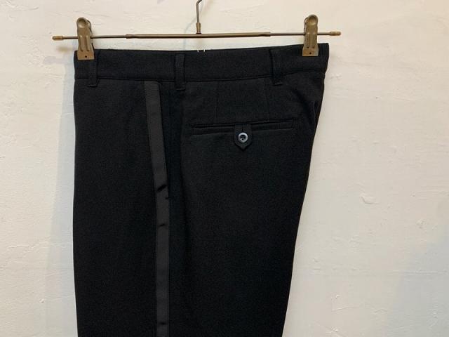 ストレッチ素材を使用したサイドラインのスラックスパンツ。