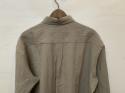 ヨーロッパ産のリネン(ブレンド)を主体に、インド産長綿を混紡した素材を使用し、関西の工業地帯の中で、ひとりで旧織機のみを使用して生地を製作している機職人に製作していただきました。色糸と白糸を交互に配列してシャンブレー生地を織った後(先染め)、複数回強めのワッシャー加工を施すことで、新品の状態で、先染めと色落ちの区別がつかない程、絶妙な色合いになっております。独特のシワ感も加わり、シンプルでも存在感のある生地で、隠しボタンダウンシャツを製作しました。生地は真夏用に製作したためとても薄く、長袖シャツも夏場に活躍することと思います。