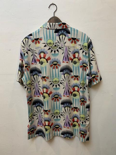 ツルっと光沢のある素材を使用した半袖開襟シャツ。不思議で芸術的、そして個性的なデザインが、夏のコーディネートの格を上げてくれます。
