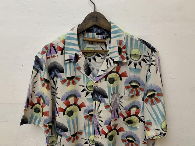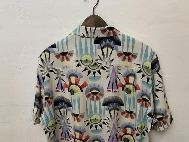ツルっと光沢のある素材を使用した半袖開襟シャツ。不思議で芸術的、そして個性的なデザインが、夏のコーディネートの格を上げてくれます。