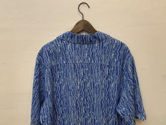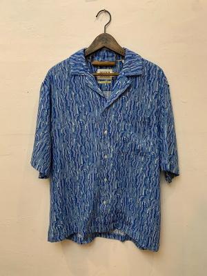ユニークなデザインのトロピカル開襟シャツ。レーヨンとリネンの不思議な肌触りが個性を引き立たせます。ボックスシルエットなので、ワイドなボトムとの相性も抜群です。