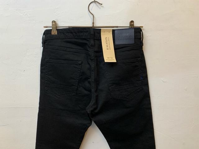 RALSTONタイプ(レギュラースリムフィット)。自然なフィット感が特徴的なデザインで、すっきりとしたシルエットでスタイルが良く見える人気のモデルです。色落ちさせていないブラックジーンズになります。コーディネイトにも取り入れやすく、定番的なデニムとしてとても活躍してくれます。