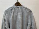 素材は麻の中でも繊維の太さが均質なラミー100%使用し、経糸と緯糸に異なる色のトップ糸を張り織り上げた、贅沢なシャンブレーです。上品な透け感があり、見る角度によって少々色の見え方が変化する、とても表情のある生地で、ギャザーをたっぷり寄せブラウスを製作しました。