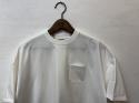 素材はインド産長綿を極細番手に紡績をし、32ゲージというハイゲージで編み上げたシンプルな天竺生地を使用しました。しっかりとしたウォッシュ加工、タンブラーを数回経ているため、ハリがありながらも少しカラッとした天日干しをした様な風合い、色落ち感が特徴です。その生地で身幅を今までになくワイドにとったクルーネックのポケットTeeを製作しました。