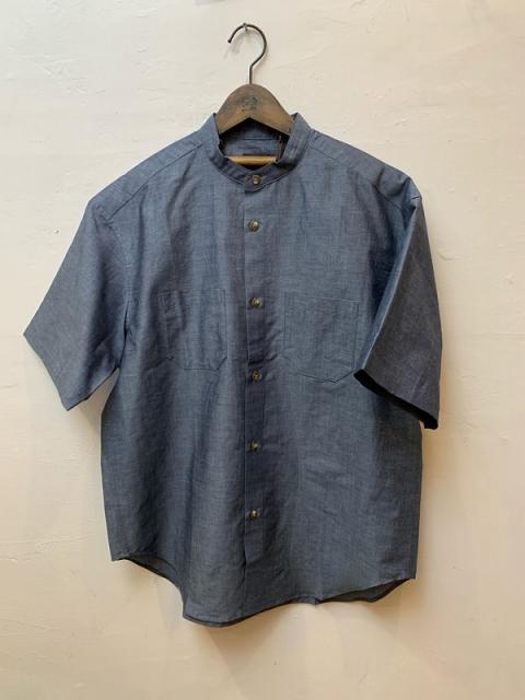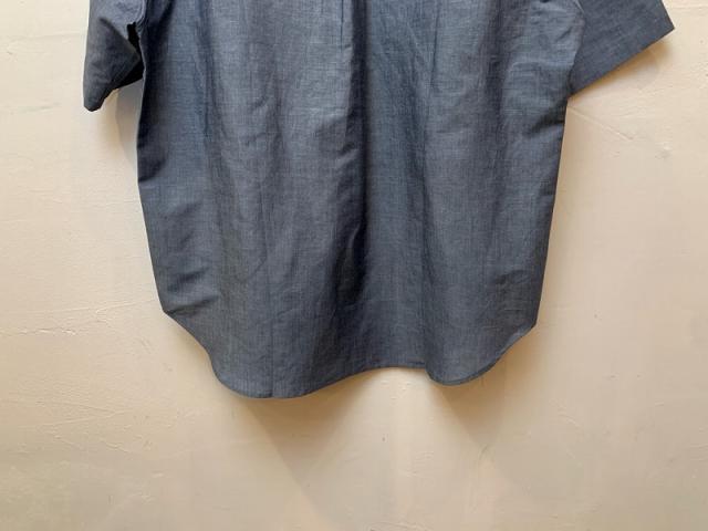 透け感がなく比較的しっかりした厚みの生地で、過去に展開の無かったバンドカラーの半袖シャツを製作しました。パンツにタックインするととても上品に着用できる、使い勝手の良い半袖シャツです。