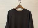 袖はゆったりしたラグランスリーブで、裾の後ろ側はリブ&タックが入ったラウンドシルエット。ヒップが程よく隠れる着丈でリラクシーな着心地なのに、一枚で様になるアイテムです。