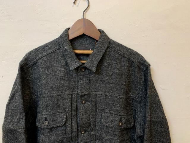 織りあげました。その生地を使用しGジャン型ジャケットとワイドパンツを製作しました。ジャケットは、生地の柔らかさと軽さの割には保温性が高いため、冬季でもアウターとして着用可能なアイテムです。ハイネックニットなどと合わせたスタイリングがオススメです。
