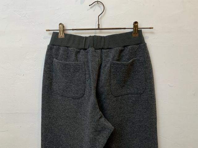 表側を南米産ウールをメインに、裏側をインド綿をメインにして接結させたダブルファイスのカットソー生地を使用して、comm. arch. ではとても珍しい、スウェットパンツを製作しました。