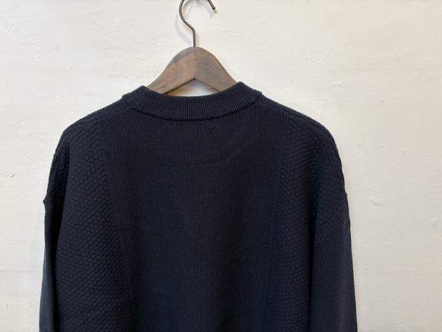 大小のカノコ編みのような柄を縦に切り替えたデザインニット。凹凸感のあるリンクス編みはニットならではの表情をたのしめます。身頃部分の編地を縦に切替デザインを加えることで、シンプルながらメリハリの効いた1着に。