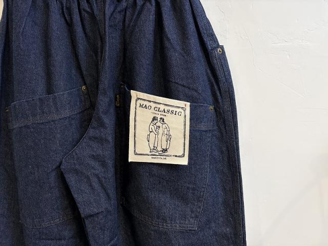 10オンスムラ糸デニムを使用した定番マオパンツのロングタイプ。
