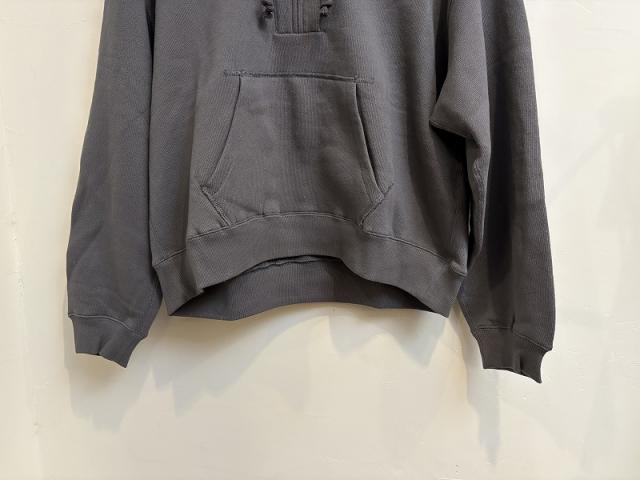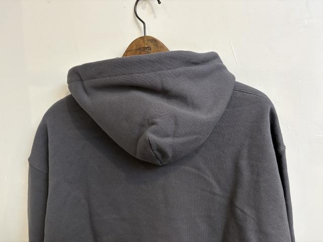 軽さとふっくら感が魅力の18/1OE裏毛を使用したハーフZIPのフーディープルオーバー。しっかりボリュームのあるフードはZIPを開けても閉めても様になります。