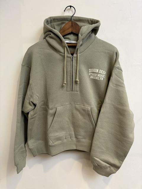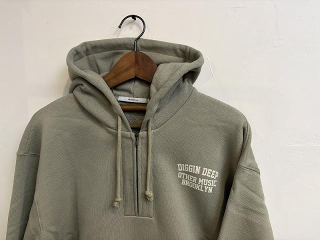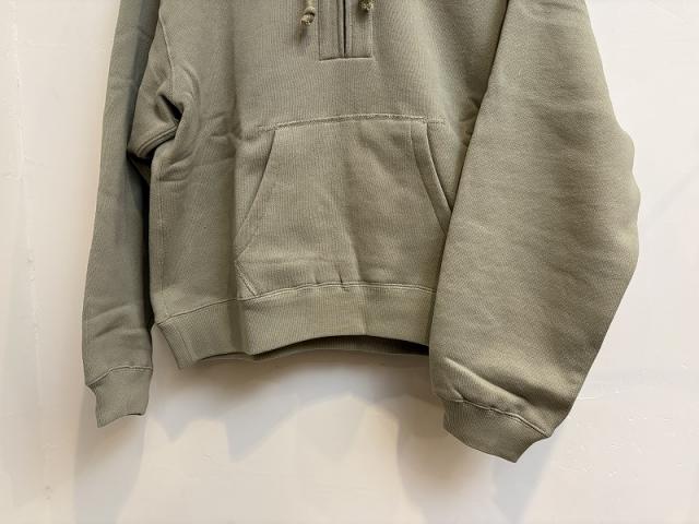 軽さとふっくら感が魅力の18/1OE裏毛を使用したハーフZIPのフーディープルオーバー。しっかりボリュームのあるフードはZIPを開けても閉めても様になります。