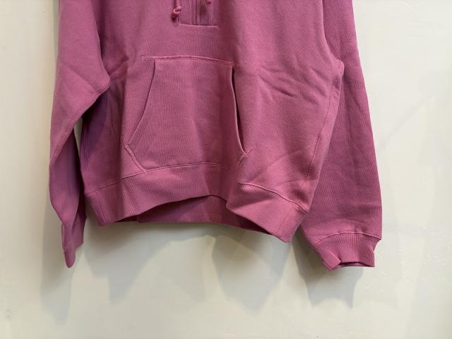 軽さとふっくら感が魅力の18/1OE裏毛を使用したハーフZIPのフーディープルオーバー。しっかりボリュームのあるフードはZIPを開けても閉めても様になります。