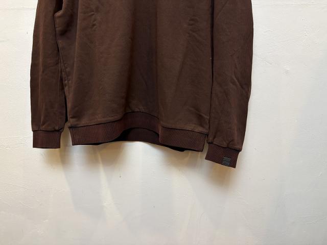 しっとりとしたタッチのミニ裏毛を使用し、製品段階で黒のピグメント染色を施した後にバイオ加工を行うことで、男らしい粗野な雰囲気を出しています。この特殊な加工により、単なるスウェットとは一線を画す独特の風合いと質感を実現し、着込むほどに味わいが増していく経年変化も楽しめます。