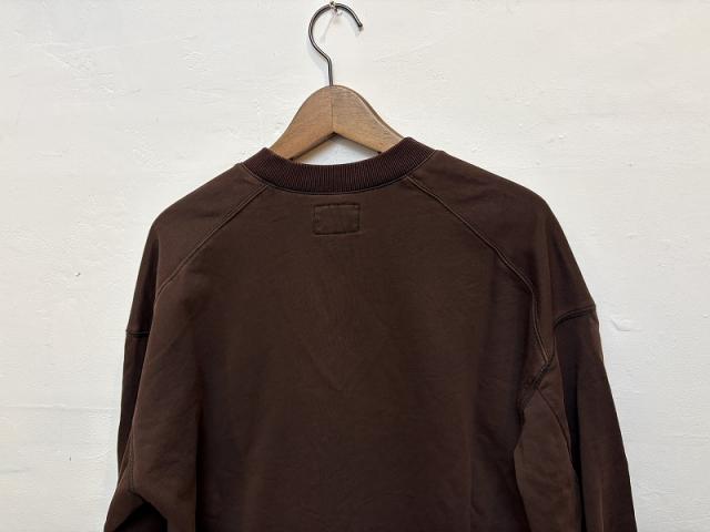 しっとりとしたタッチのミニ裏毛を使用し、製品段階で黒のピグメント染色を施した後にバイオ加工を行うことで、男らしい粗野な雰囲気を出しています。この特殊な加工により、単なるスウェットとは一線を画す独特の風合いと質感を実現し、着込むほどに味わいが増していく経年変化も楽しめます。