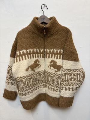 様々な編み模様を入れて手編みのような雰囲気の仕上げたカウチン。起毛感のあるニット地でニュアンスがあり、落ち着いた配色で大人の方が取り入れやすいデザインになっています。