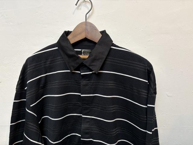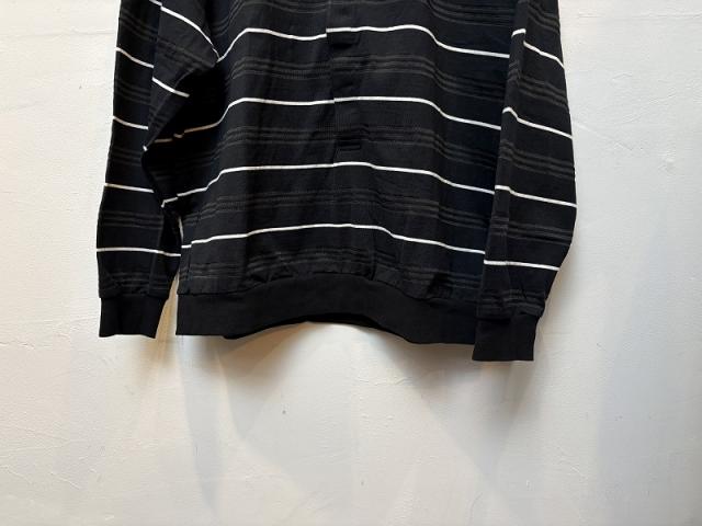 すっきりとしたクールなボーダーをオリジナルで編み立てました。アクセントとしてさりげなく光沢のある糸を使用することで、一癖あるボーダー柄に仕上がっています。この光沢糸の効果により、シンプルながらも奥行きのある表情を演出し、着用者の個性を引き立てます。