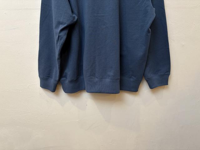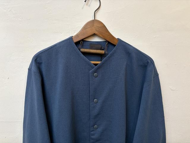 アメリカ産長綿を空気紡績機で、細番手に紡績した糸を100%表面に、裏地に使用される再生繊維のキュプラを裏にのみ出るようプレーティング(添え糸)して編み上げた生地を使用しております。そのため、表はシャリっとドライタッチに、裏はスルっと着やすい感覚です。ロンTより厚手、スウェットよりは薄手のため、通年重宝するスウェットです。個人的に2025年春に着用し、かなりヘビロテし重宝したアイテムのため、26SSは、プルオーバーと浅Vブルゾンを製作しました。日々気温差が大きい春~初夏にかけて自然と着用してしまうアイテムと思います。