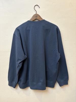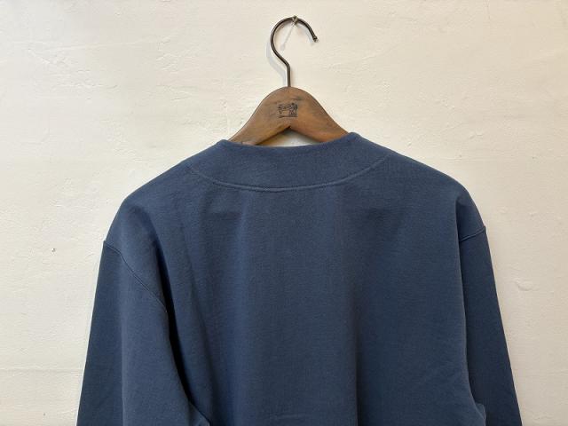 アメリカ産長綿を空気紡績機で、細番手に紡績した糸を100%表面に、裏地に使用される再生繊維のキュプラを裏にのみ出るようプレーティング(添え糸)して編み上げた生地を使用しております。そのため、表はシャリっとドライタッチに、裏はスルっと着やすい感覚です。ロンTより厚手、スウェットよりは薄手のため、通年重宝するスウェットです。個人的に2025年春に着用し、かなりヘビロテし重宝したアイテムのため、26SSは、プルオーバーと浅Vブルゾンを製作しました。日々気温差が大きい春~初夏にかけて自然と着用してしまうアイテムと思います。