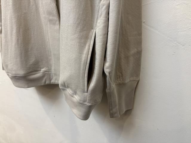 素材は、しなやかで艶のあるインド産DCHオーガニックコットン(スピン綿に並ぶ超長綿)を100%使用しております。極細番手の糸を接結(ダブルフェイス)で生地を編み上げました。(独特な斜めのシボが出ます。サンプル、写真をご参照ください。) とにかく肌触りが良く、程よい肉感とストレッチ性があり、とてもバランス良く仕上がっております。身幅をしっかりとった、袖が小さめの半袖Teeと、ブルゾン仕様にしているカーディガンを製作しました。個人的に試作を繰り返し着用し、安心感と使い勝手の良さを感じている素材です。