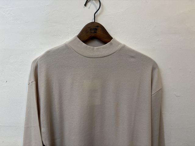 comm. arch. SSで多用する、アメリカ産超長綿のスーピマ綿の極細番手を強撚し、ミラノリブ組織で編みました。綿100%とは思えない肌離れの良さと伸縮性が特徴の生地に仕上がりました。その素材を使用し、春先にインナーとしてご着用いただきたい長袖モックネックTeeを製作しました。淡色は少し透け感がありますが、ウールインナーの着用を終えたいけれどまだ肌寒い時期にぴったりの長袖シャツです。お洗濯時に1サイズほど縮みが出るため、それを加味した寸法にしております。