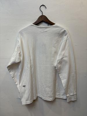 袖口にはブランドマークの入ったピスネームが取り付けられ、ネック部分はカットオフ仕様により、カジュアルスタイルに最適な表情を作り出しています。ヘビーオンス素材特有の適度な重量感が身体に心地よくフィットし、一枚着としても重ね着のインナーとしても活躍します。