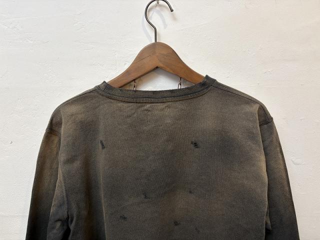 加工感にこだわったヴィンテージなクルーネックスウェット。やや薄手の7.4オンスの裏毛を使用しており、ダメージ加工、さらに随所にリメイク加工を施しヴィンテージライクな雰囲気をプラス。また、製品染めをすることで、経年変化を感じるムラ感のある表情に仕上げています。