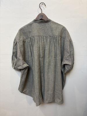 ヨーロッパ産のデッドストック生地を使用し、初春用にたっぷりとギャザーを寄せたブラウスを製作しました。