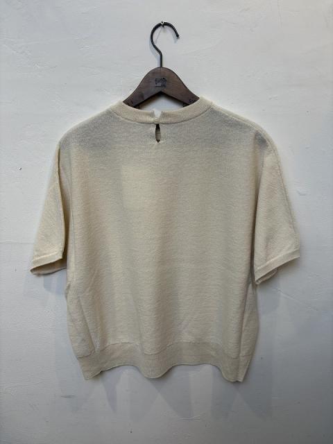 半袖プルオーバーは一見シンプルな半袖ニットですが、実はドルマンスリーブで、身頃脇を少し前にずらすことで、横から見た際にもスマートに見える仕様にしています。