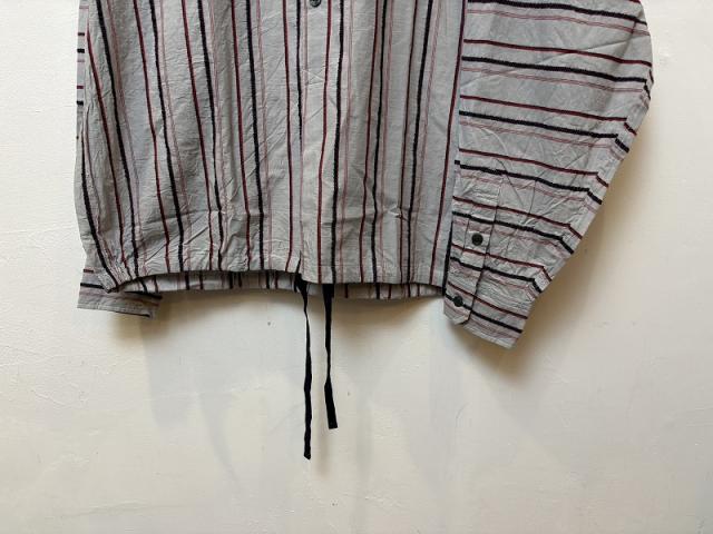 存在感のある立体的なボーダー柄を使用した、オーバーサイズのプルオーバーシャツです。インパクトのある素材だからこそ、あえてすっきりとしたミニマルなデザインでまとめることで、ボーダーの魅力を最大限に引き出しています。この素材とデザインのバランスが、派手すぎず地味すぎない絶妙な存在感を生み出し、大人の男性にふさわしい洗練された印象を演出します。