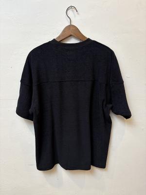 極細番手の糸でパイルの高さを出さずに編み上げることで、パイルアイテム特有のパジャマ感を軽減し、[タオル]よりは[モール]のような表面に仕上げました。