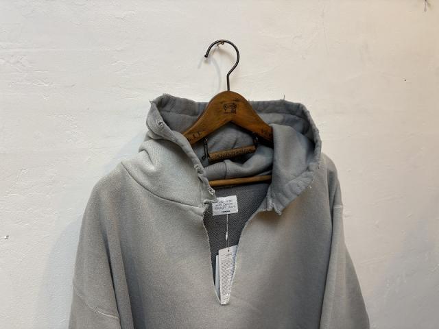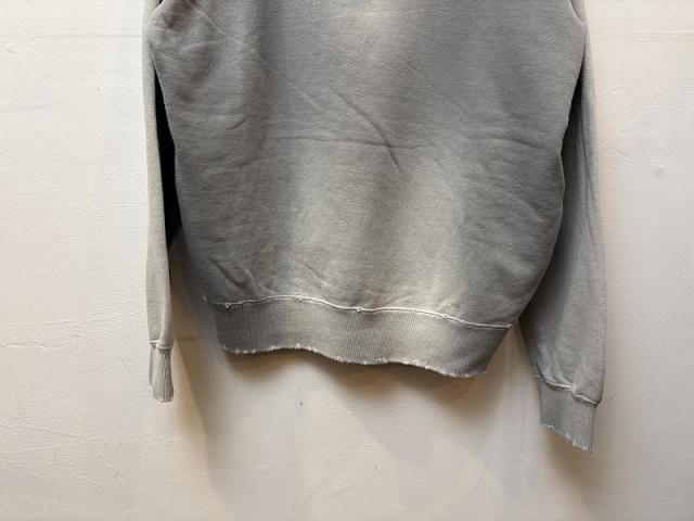 ムラ染めが特徴のスウェットパーカー。10オンスの裏毛をスウェットに仕立て、製品染めとダメージ加工によりヴィンテージライクな雰囲気に仕上げています。ベーシックなシルエットがデニムと好相性で、ラフにカットしたスキッパーデザインは顔回りをすっきりと見せてくれます。暑い時期には中にインナーを入れて、寒い時期にはアウターを重ねてレイヤードアイテムとしても重宝する一着。